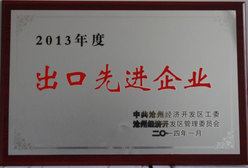 • 2014年荣获“2013年度出口先进企业” 荣誉称号