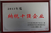 2014年荣获“2013年度纳税十强企业” 荣誉称号